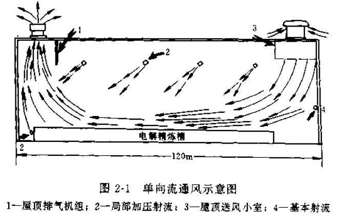 (2)單向流通風圖2-1是單向流通風的示意圖。它通過有組織的氣流運動,控制有害